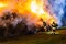 Rund 180 Strohballen brannten bei Eintreffen der Feuerwehr gegen 0:30 Uhr am Freitagmorgen lichterloh. Dadurch kam es zu einer massiven Rauchentwicklung, die in das angrenzende Wohngebiet zog. Rauchmelder in mehreren Wohnhäusern lösten in dessen Folge aus.