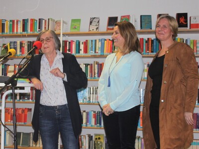 Die beiden Autorinnen haben vor zwei Jahren über ihre Bücher zusammengefunden und sind seitdem bis zu zehn Mal im Jahr gemeinsam mit ihrem Programm unterwegs. Augenzwinkernd und voller Humor lesen und talken sie durch den Abend. Beim Genuss von hausgemachen Karamellbonbons sorgen sie zusätzlich für Gaumenfreuden. Das Publikum in der Stadtbücherei, darunter 3 Männer, belohnten das Duo mit viel Applaus. (pm) +++